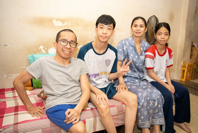 自宅で写真に納まるグエン・ドクさん(左端)一家。