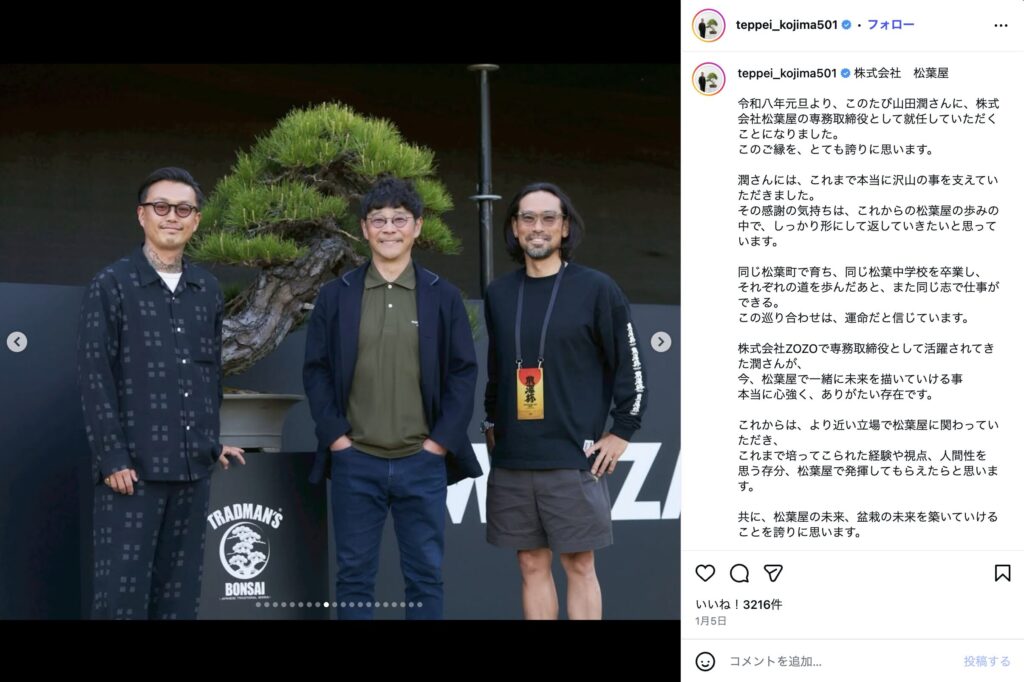 山田潤さんと小島鉄平さんは、同じ松葉町で育ち、同じ松葉中学校を卒業し、それぞれの道を歩んだあとまた巡り合ったそうです。同志であり戦友であり、この縁を誇りだとInstagramで報告しています。