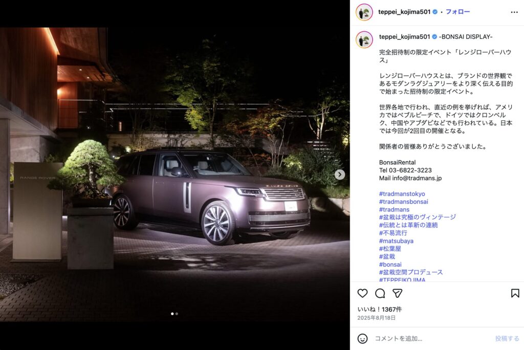 リース事業を始めるとラグジュアリーブランドから依頼が詰めかけ、会社を設立しました。盆栽の販売・リース事業を行なっています。小島鉄平さんはCEO兼プロデューサー、盆栽職人として活動しています。