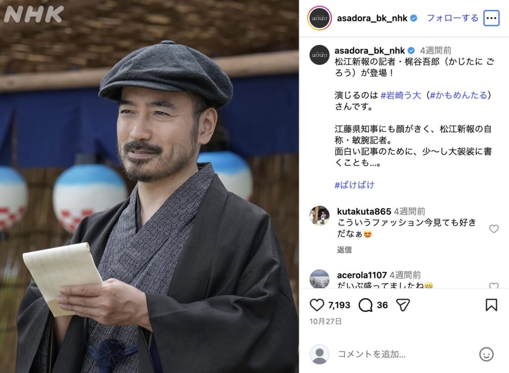 岩崎う大さんは現在、NHKの連続テレビ小説『ばけばけ』に梶谷吾郎役で出演するんど、多くの注目が集まっています。脚本家や演出家としても活動しており、演出を担当した舞台は高く評価されています。