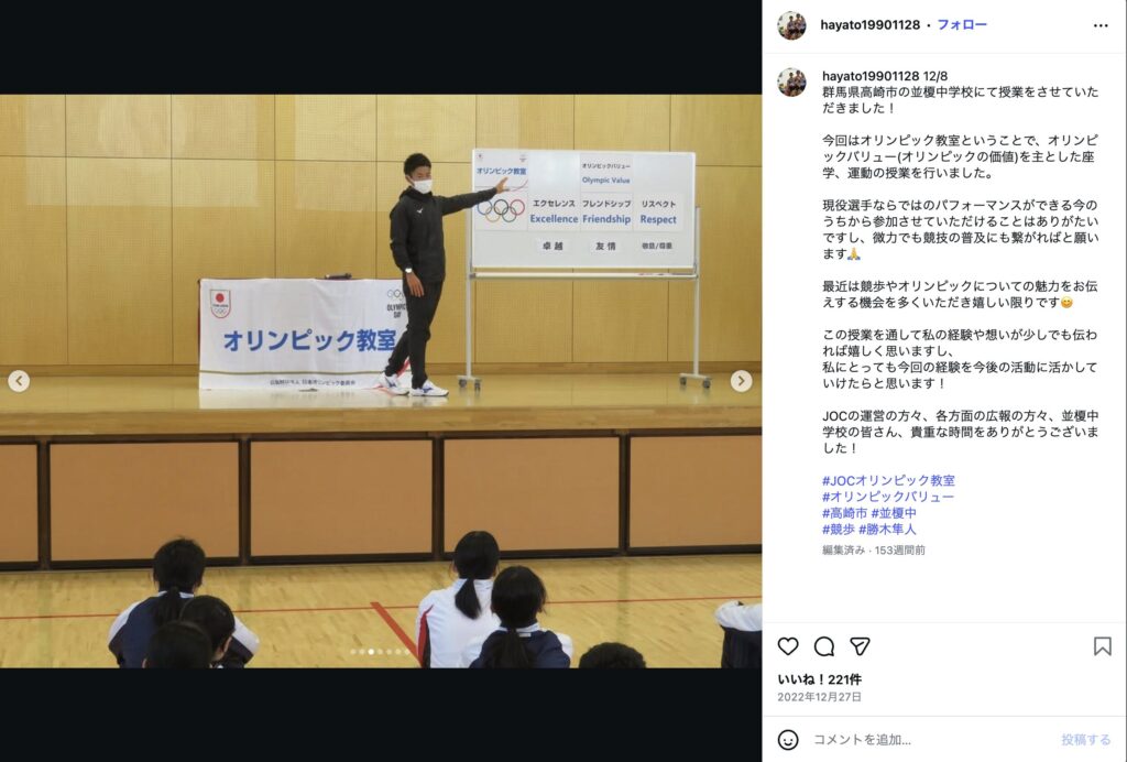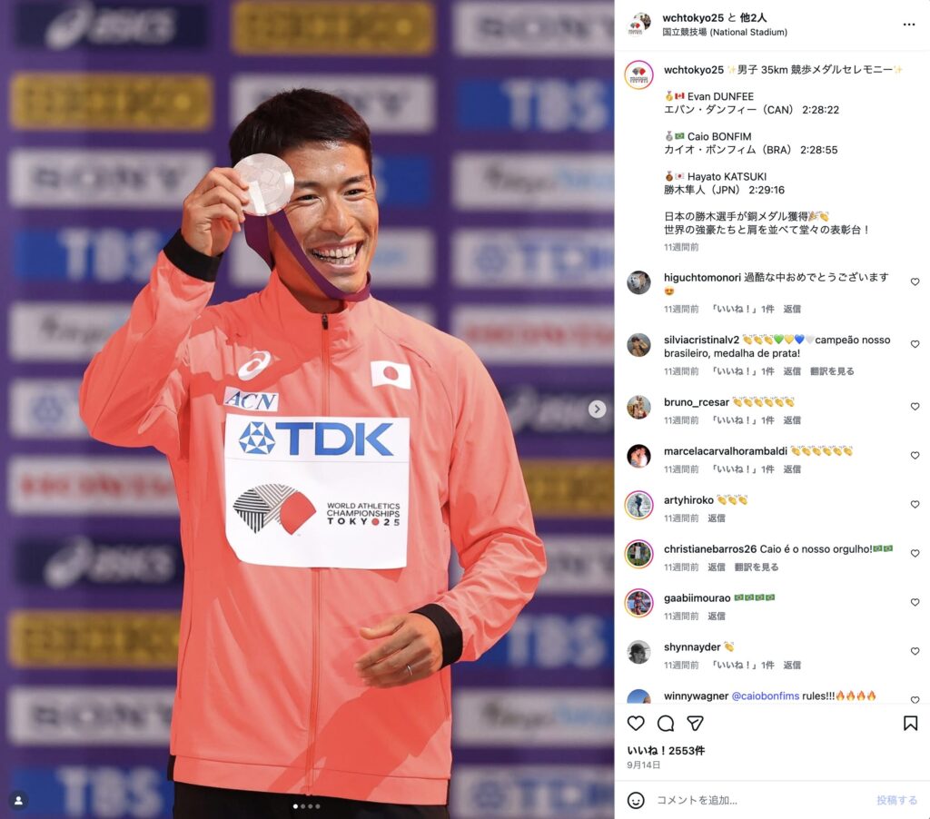 日本中が感動の渦に巻き込まれた世界陸上の熱を冷まさないよう、今後、競歩をはじめ陸上の普及活動に尽力する決意を語られた勝木隼人さん。大会後も自身のSNS等で競歩界を盛り上げるべく発信を続けるています。