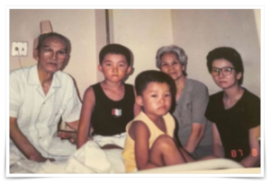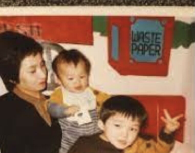 以前河井ゆずるさんのインスタで、幼少期に家族で墓参りしたときの写真が投稿されました。手前にはピースサインをする弟。背後には桜の木があり、その奥には棒立ちしている祖父が。