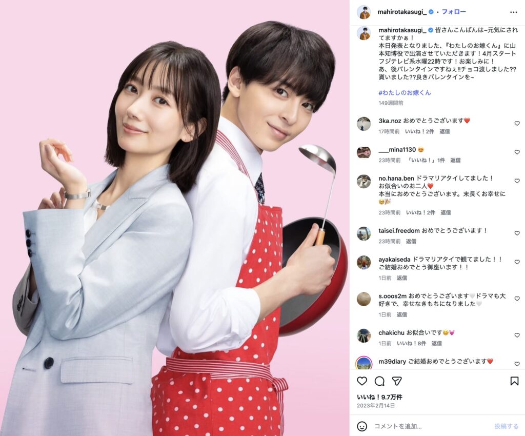 互いにトップ俳優として活躍する2人ですが、これまで交際が報じられたことはなく、まさに電撃結婚した高杉真宙さんと妻・波瑠さん。
