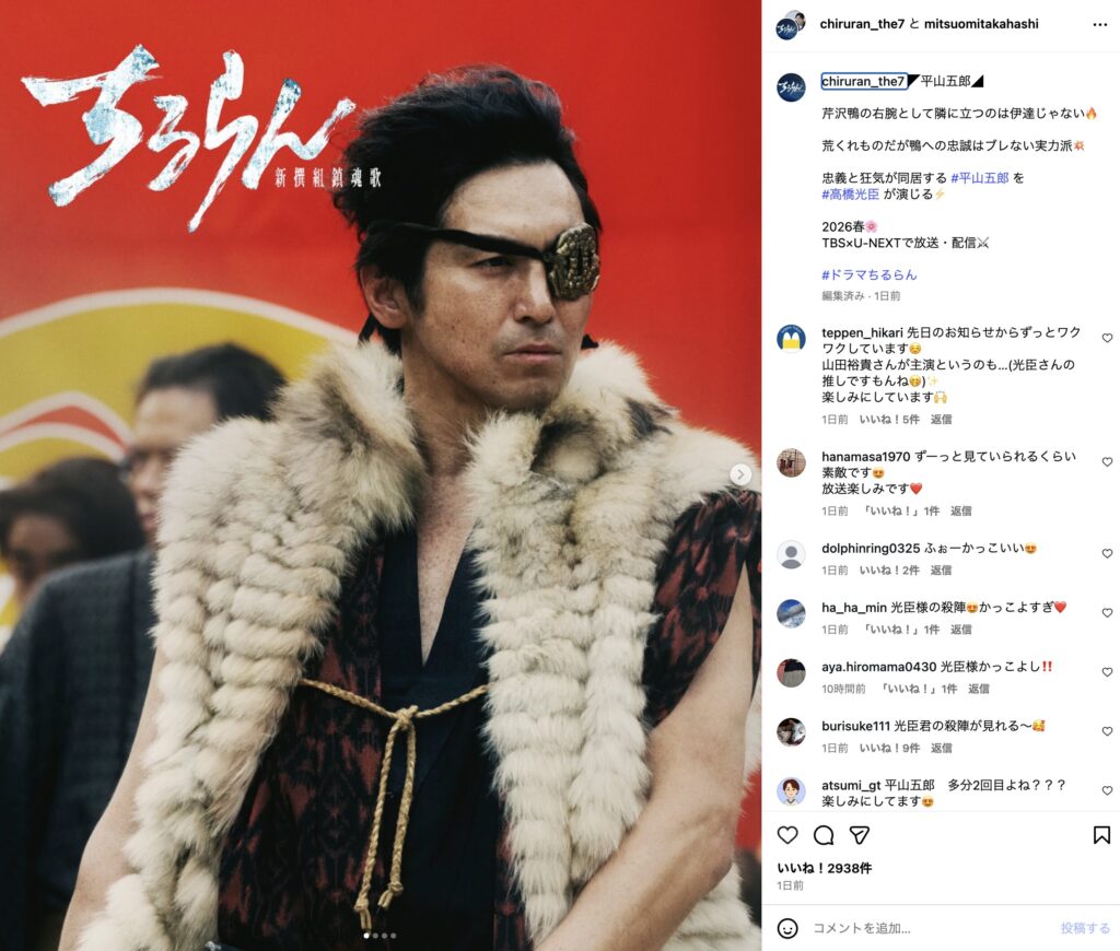 俳優のキャリアを着実に積んでいる高橋光臣さん。2026年春にTBSでスペシャルドラマとして地上波放送、U-NEXTでドラマシリーズを独占配信する山田裕貴さんが主演を務める『ちるらん 新撰組鎮魂歌』に出演が決定し話題となっています。
