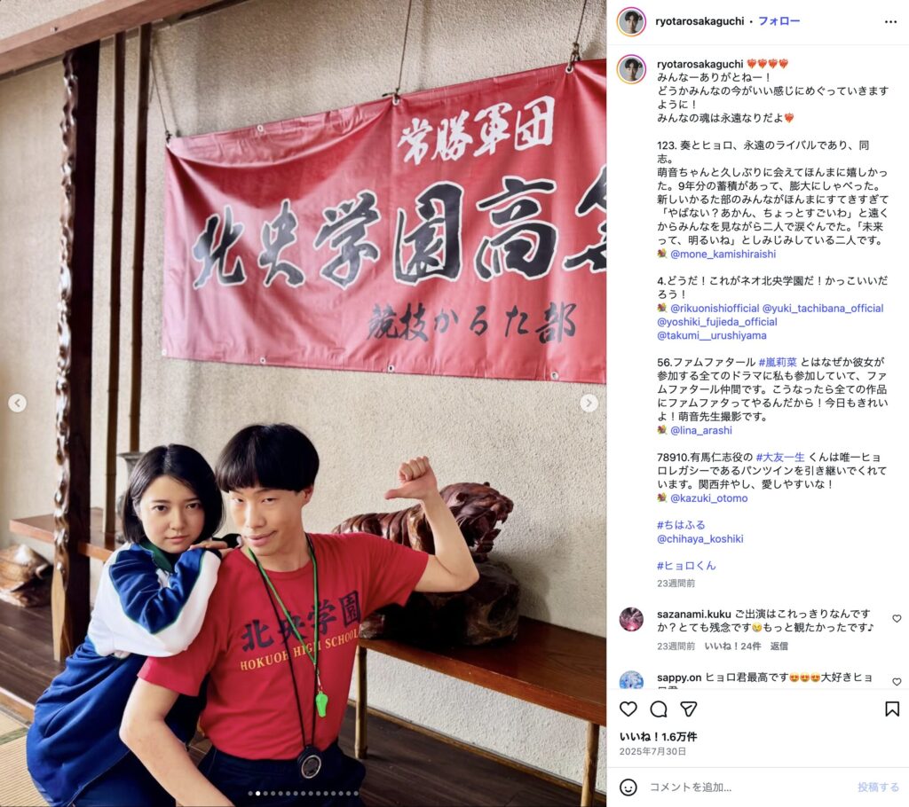 🔵2016年から2018年に公開された映画『ちはやふる』シリーズにオーディションを経てヒョロこと木梨浩役で出演。