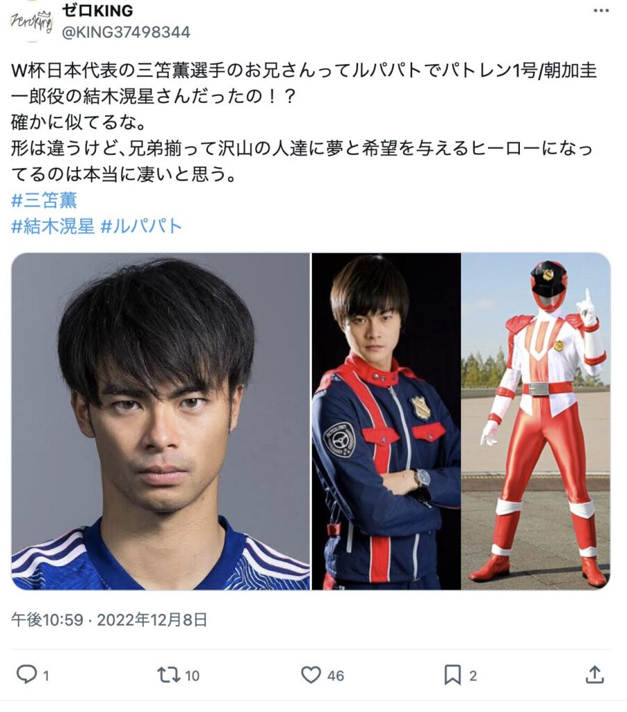 「彼の家族には有名人がいるんです。三笘の兄は芸能人なんですよ。スーパー戦隊シリーズのヒーローを演じたり、ドラマにもけっこう出演しているので、三笘は『これ!俺の兄貴!」なんて言っていますよ」